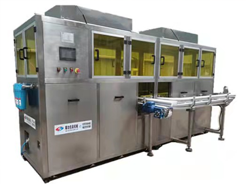 DCQ250/1000型夾式洗瓶機(jī)主要用于瓶型規(guī)格較多的生產(chǎn)廠家,其操作相當(dāng)便利,瓶子正立進(jìn)入氣洗機(jī),便于人工或者自動(dòng)上瓶;瓶子進(jìn)入機(jī)器后自動(dòng)翻轉(zhuǎn)180度,瓶口朝下,便于徹底清洗及收集污染物;清洗后,瓶子再翻轉(zhuǎn)180度正立輸送出清洗機(jī),有利于塑料瓶收集或者銜接灌裝線。…